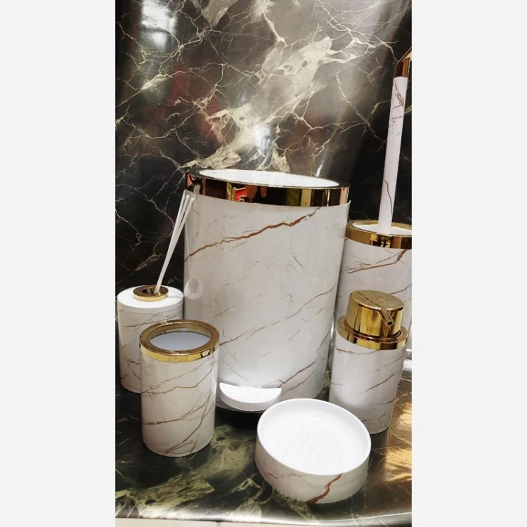 ست دستشویی 6پارچه سفیدطلایی ماربل