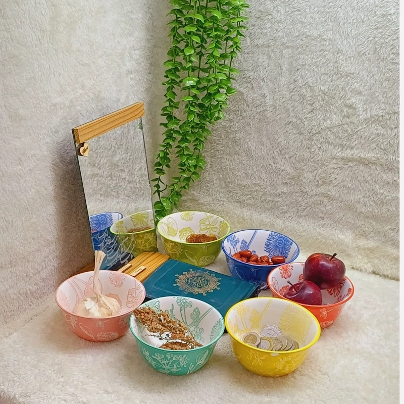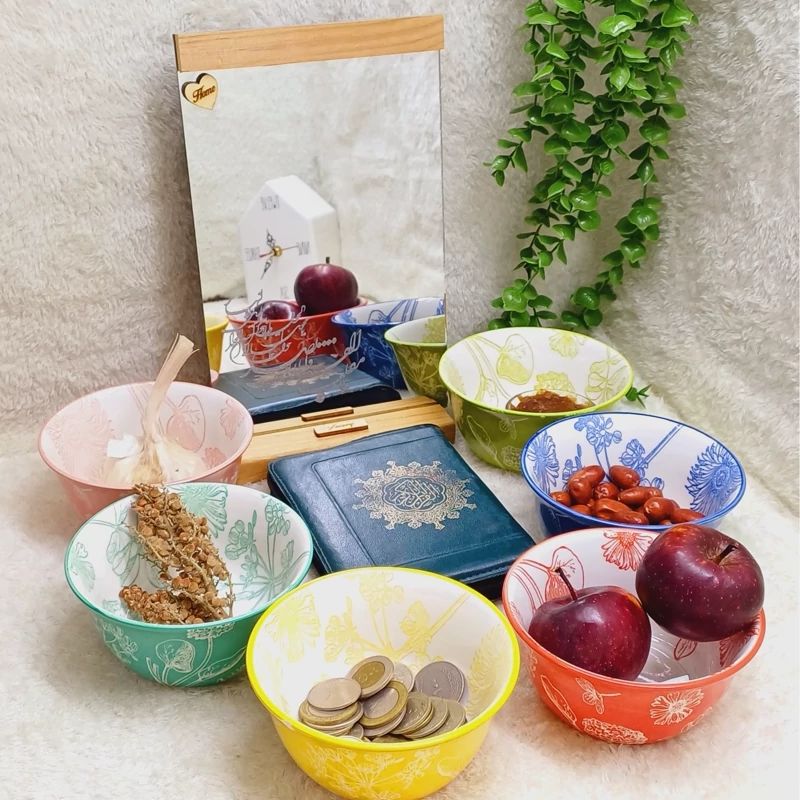 ❌️ست هفت سین شامل 10 عدد کاسه رنگی میباشد❌️ ❌️آینه و ساعت نمادین گذاشته شدند❌️ برند دنی هوم جعبه 10 عددی در 10 رنگ مختلف